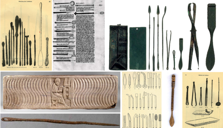 Some Roman tools were richly decorated (Figure 9). Some Albucasis’ cauteries, knifes and needles also display decorations on the manuscript drawings (See Figure 5). Ancient surgeons did not know that microorganism attach to decorations and provoke postperative infections. But Albucasis was surely aware of the risk of infection related to surgery. He used chemicals which have proved anti-bacterial properties. He also introduced important organic materials like catgut in intestinal stitches, for the first time. He used henbane for anesthesia (Arslan et al., 2014, pp. 103-104). Cotton was also widely used to apply medicines and for other purposes, for the first time, in this book.