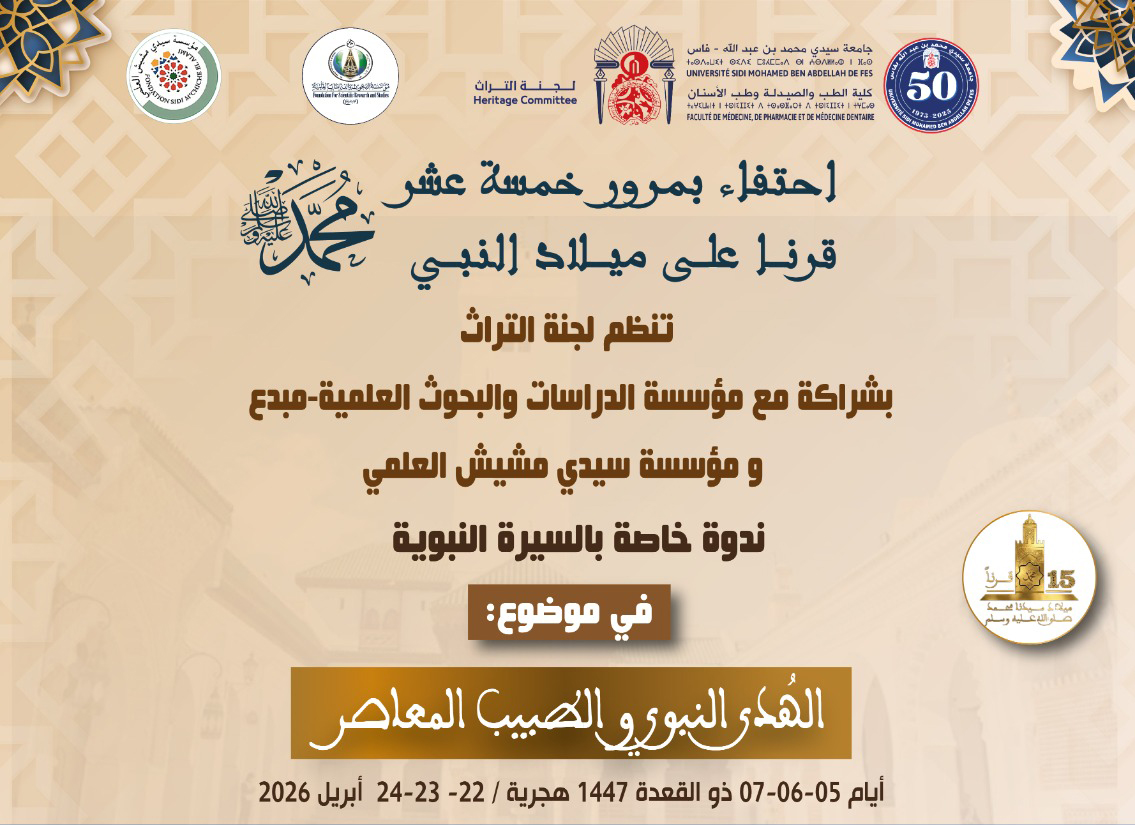 تنظم هذه الندوة بمناسبة الاحتفاء بمرور خمسة عشر قرنًا على مولد النبي محمد ﷺ، وتحمل عنوان «الطب المعاصر في ضوء الهدي النبوي». يشرف على تنظيمها لجنة التراث بشراكة مع مؤسسات علمية وأكاديمية، وذلك خلال الفترة الممتدة من 22 إلى 24 أبريل 2026 بكلية الطب والصيدلة وطب الأسنان بفاس. وتهدف هذه التظاهرة العلمية إلى فتح مجال للتأمل الفكري والأخلاقي في كيفية استلهام القيم النبوية لتوجيه الممارسة الطبية المعاصرة، سواء في مجال العلاج أو التكوين أو البحث العلمي.